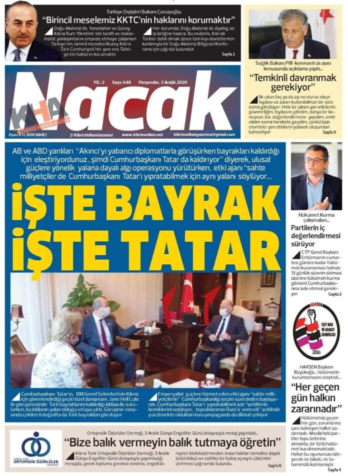 KKTC'de Gazeteler Bugün Ne Manşet Attı? ( 3 Aralık 2020 Perşembe )