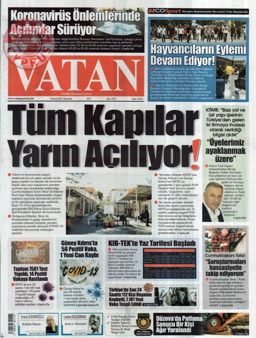 KKTC'de Gazeteler Bugün Ne Manşet Attı? (3 Haziran 2021)