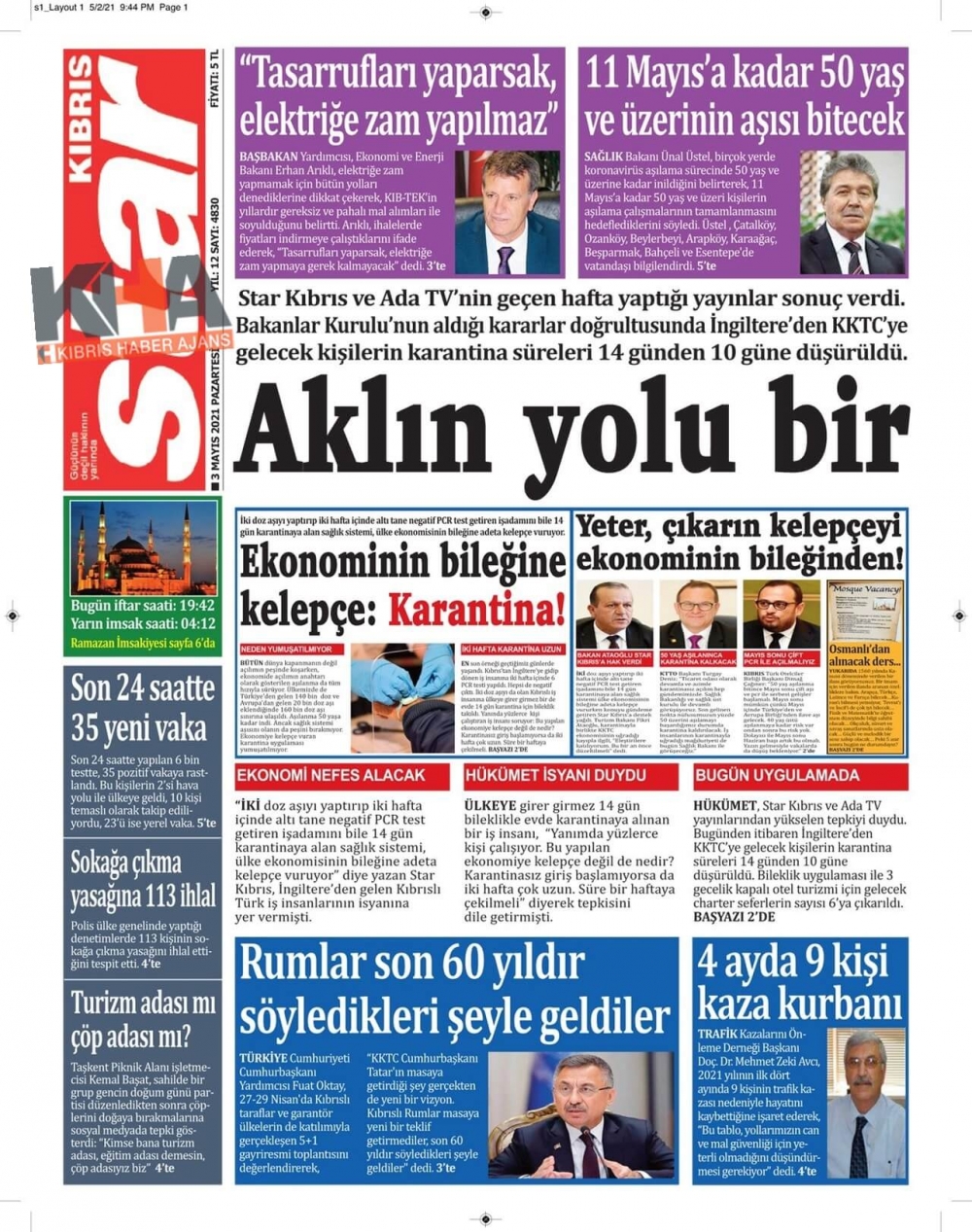 KKTC'de Gazeteler Bugün Ne Manşet Attı? (3 Mayıs 2021)