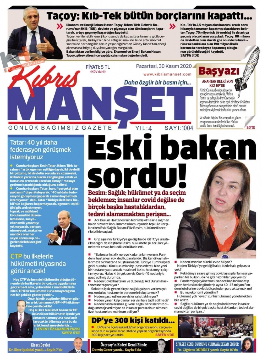 KKTC'de Gazeteler Bugün Ne Manşet Attı? (30 Kasım 2020 Pazartesi)