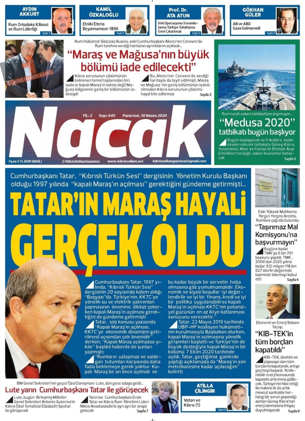 KKTC'de Gazeteler Bugün Ne Manşet Attı? (30 Kasım 2020 Pazartesi)