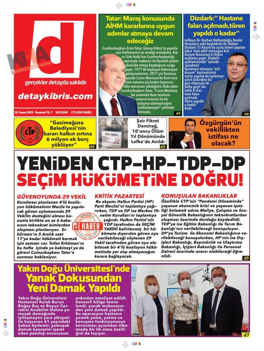 KKTC'de Gazeteler Bugün Ne Manşet Attı? (30 Kasım 2020 Pazartesi) galerisi resim 1