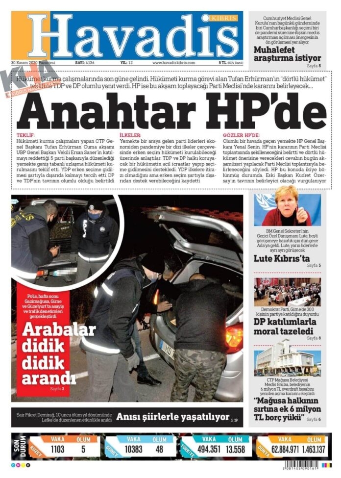 KKTC'de Gazeteler Bugün Ne Manşet Attı? ( 30 Kasım 2020 Pazartesi )