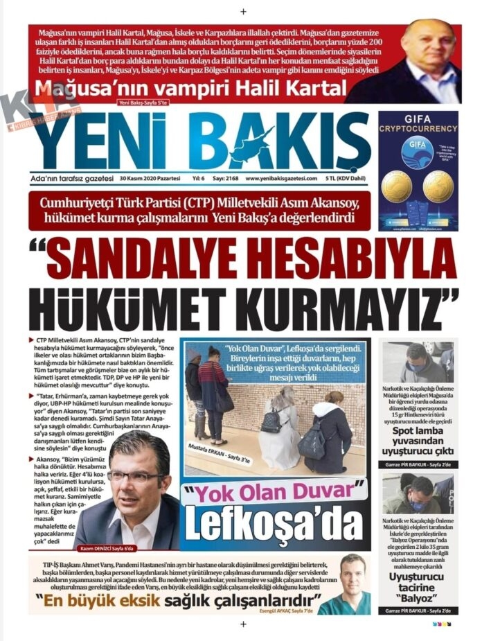 KKTC'de Gazeteler Bugün Ne Manşet Attı? ( 30 Kasım 2020 Pazartesi )