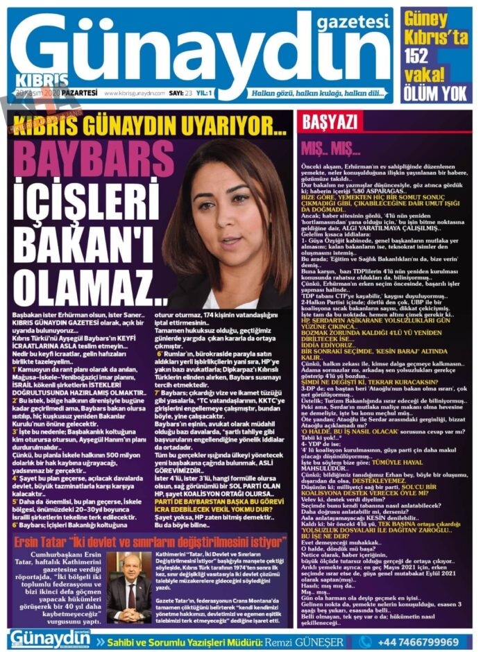 KKTC'de Gazeteler Bugün Ne Manşet Attı? ( 30 Kasım 2020 Pazartesi )