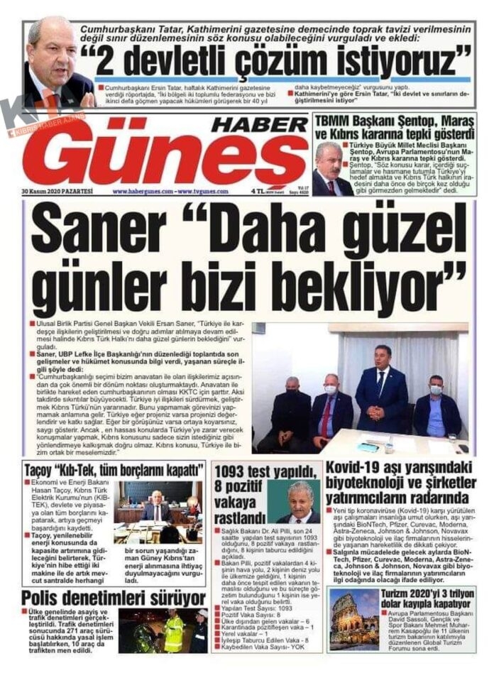 KKTC'de Gazeteler Bugün Ne Manşet Attı? ( 30 Kasım 2020 Pazartesi )