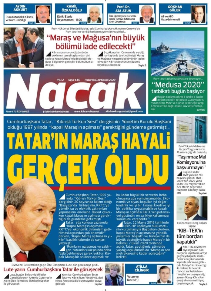 KKTC'de Gazeteler Bugün Ne Manşet Attı? ( 30 Kasım 2020 Pazartesi )