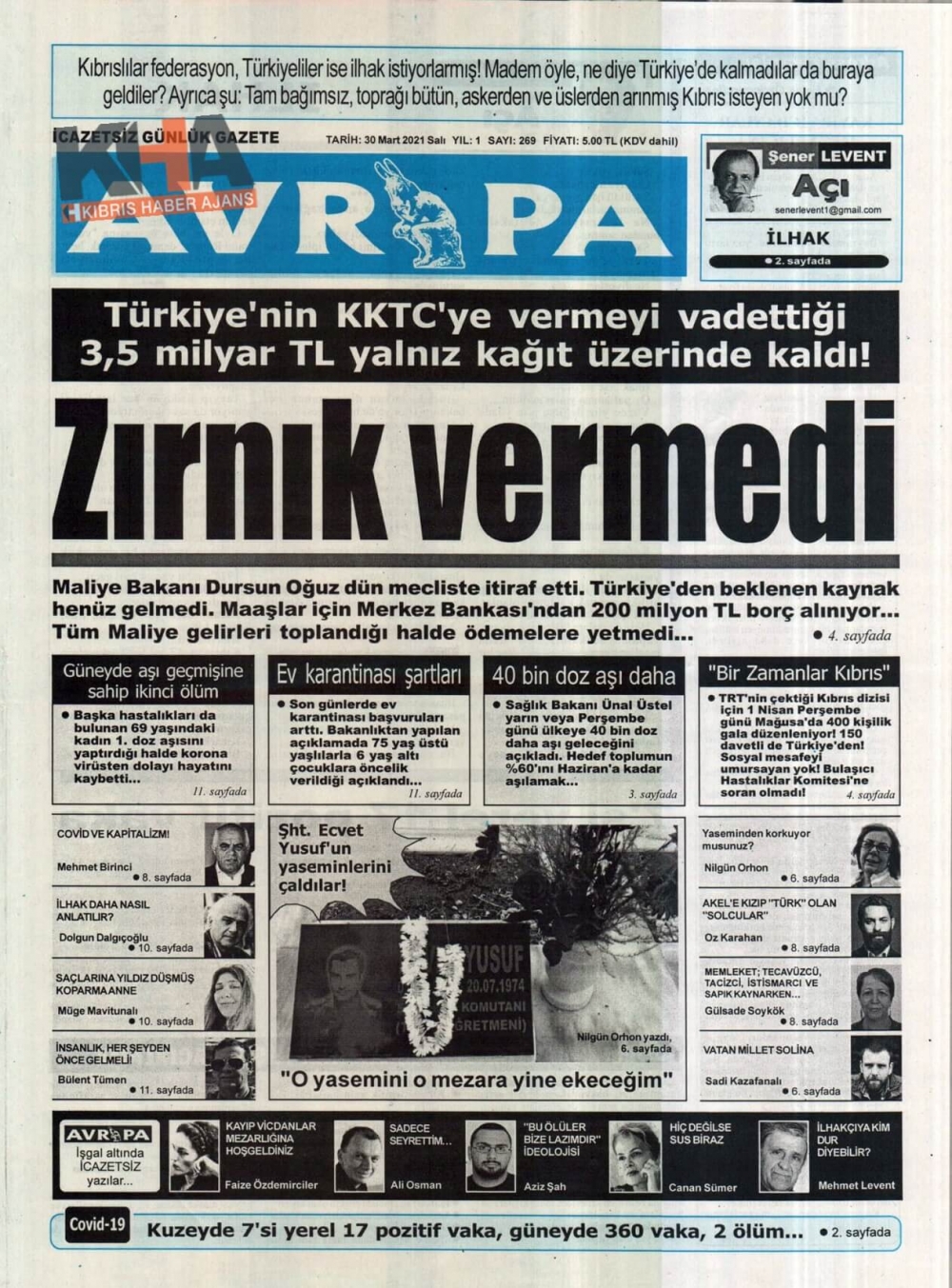 KKTC'de Gazeteler Bugün Ne Manşet Attı? (30 Mart 2021)