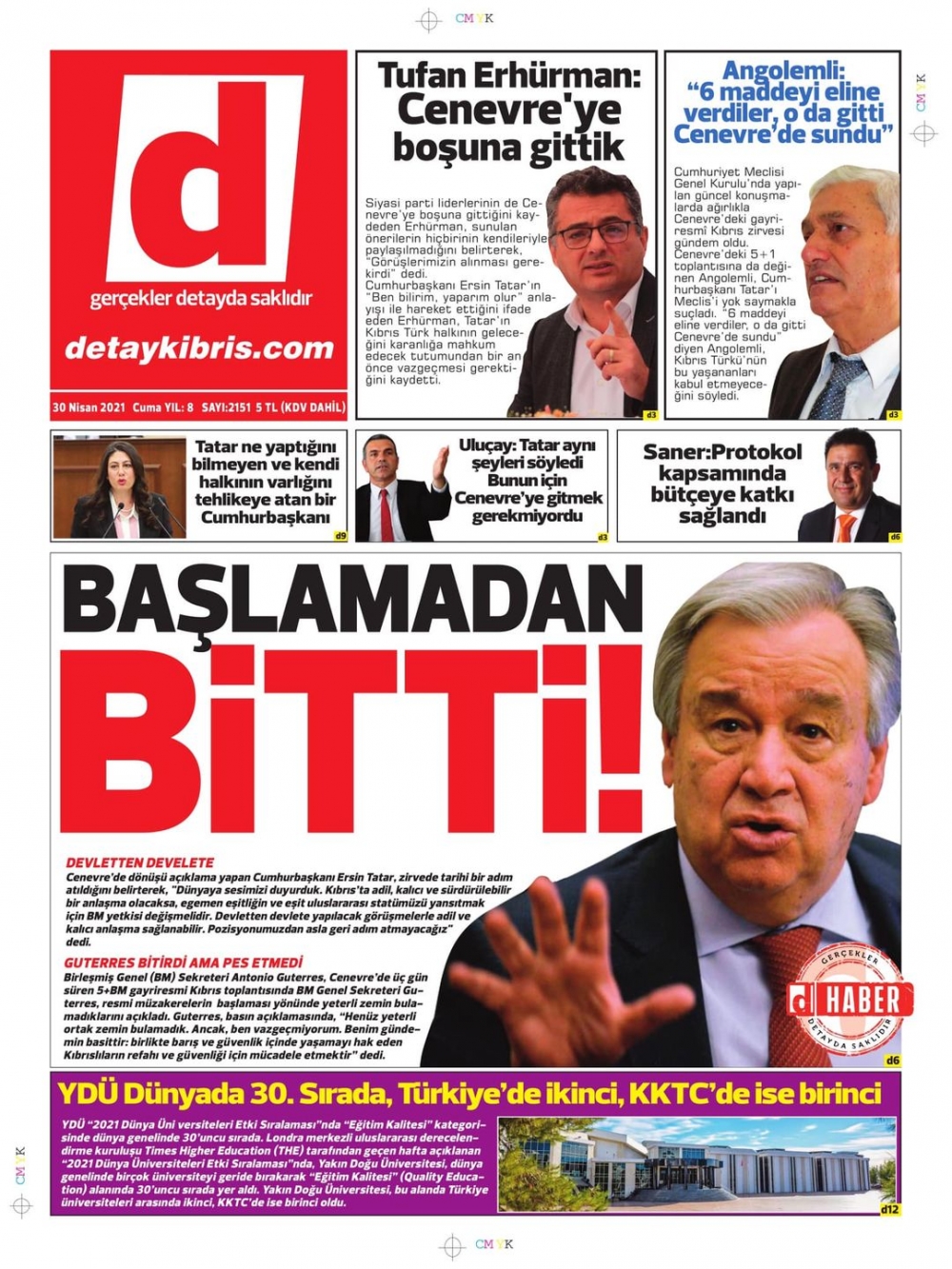 KKTC'de Gazeteler Bugün Ne Manşet Attı? (30 Nisan 2021)