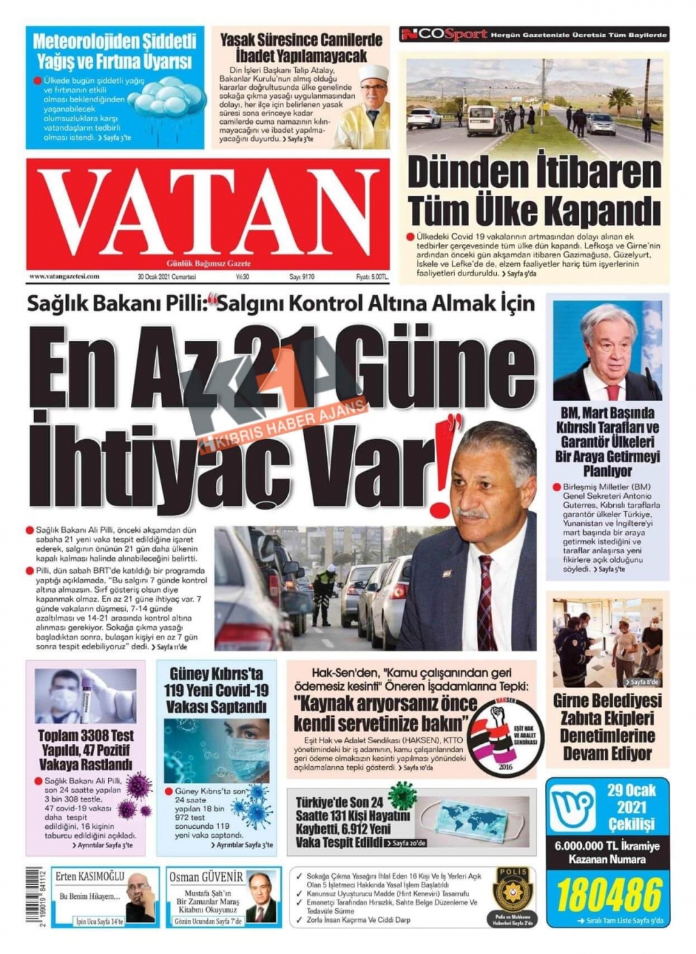KKTC'de Gazeteler Bugün Ne Manşet Attı? (30 Ocak 2021)