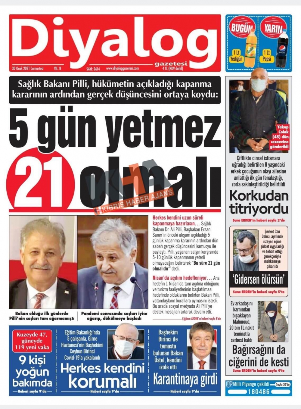 KKTC'de Gazeteler Bugün Ne Manşet Attı? (30 Ocak 2021)