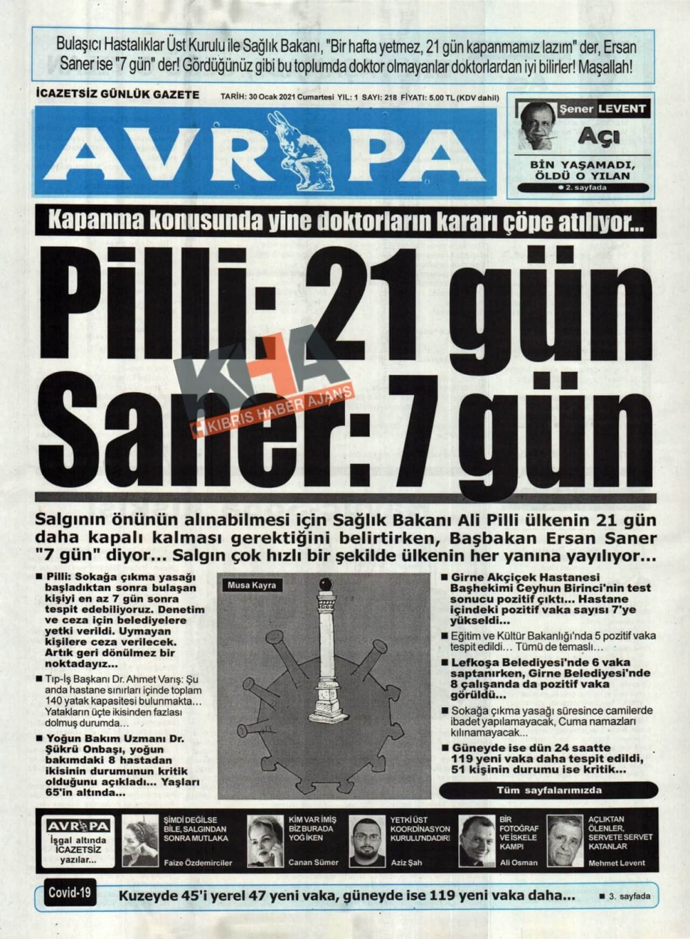 KKTC'de Gazeteler Bugün Ne Manşet Attı? (30 Ocak 2021)