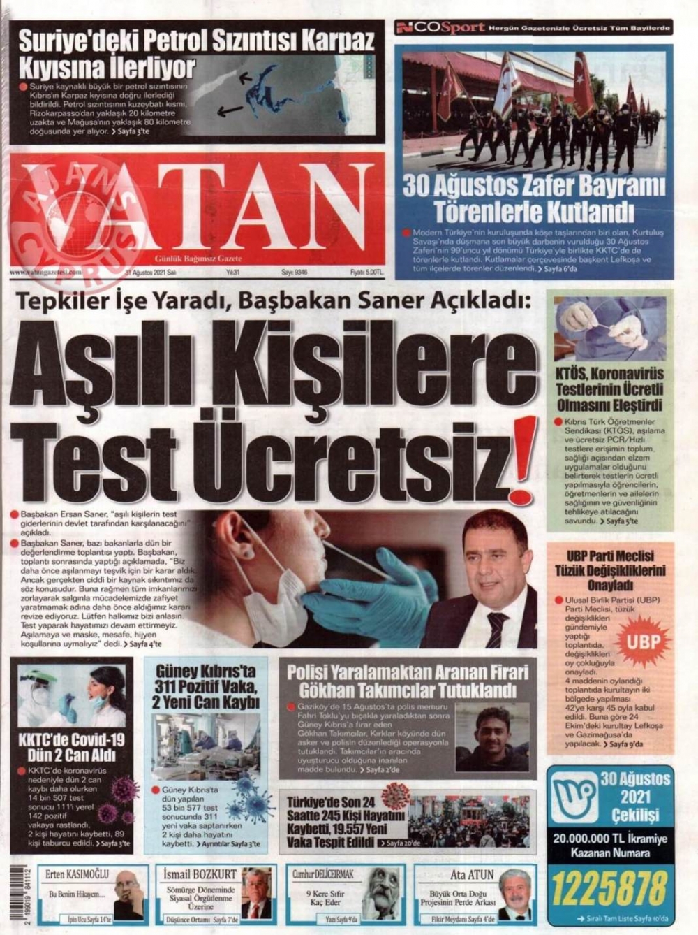 KKTC'de Gazeteler Bugün Ne Manşet Attı? (31 Ağustos 2021)