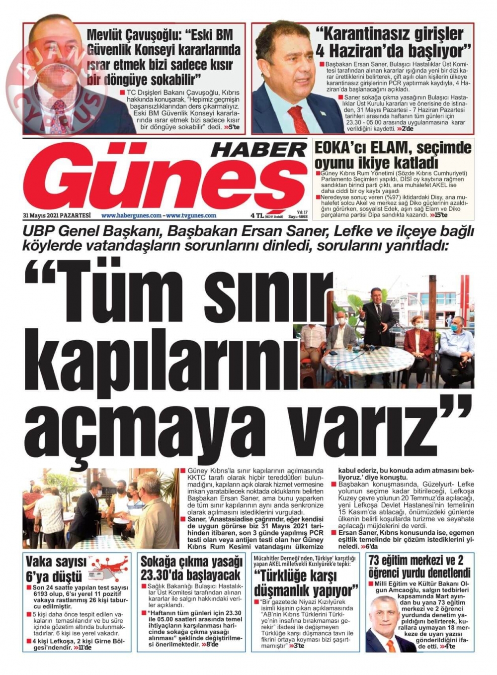 KKTC'de Gazeteler Bugün Ne Manşet Attı? (31 Mayıs 2021)