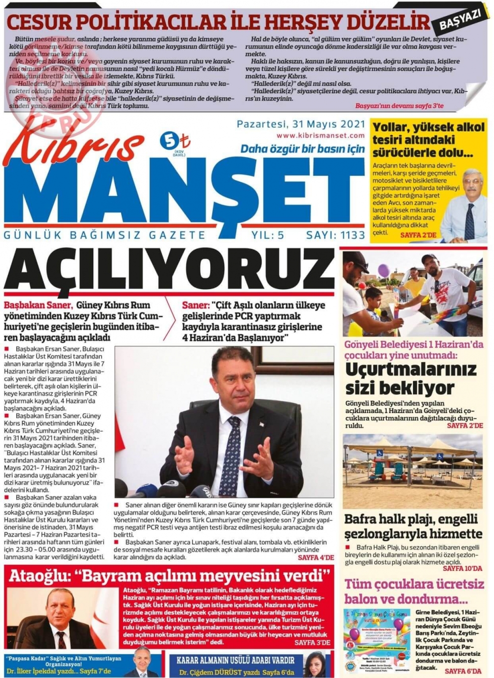 KKTC'de Gazeteler Bugün Ne Manşet Attı? (31 Mayıs 2021)