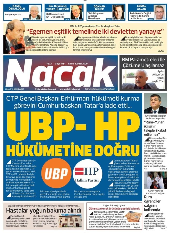 KKTC'de Gazeteler Bugün Ne Manşet Attı? (4 Aralık 2020 Cuma)