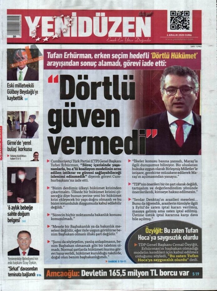 KKTC'de Gazeteler Bugün Ne Manşet Attı? (4 Aralık 2020 Cuma)