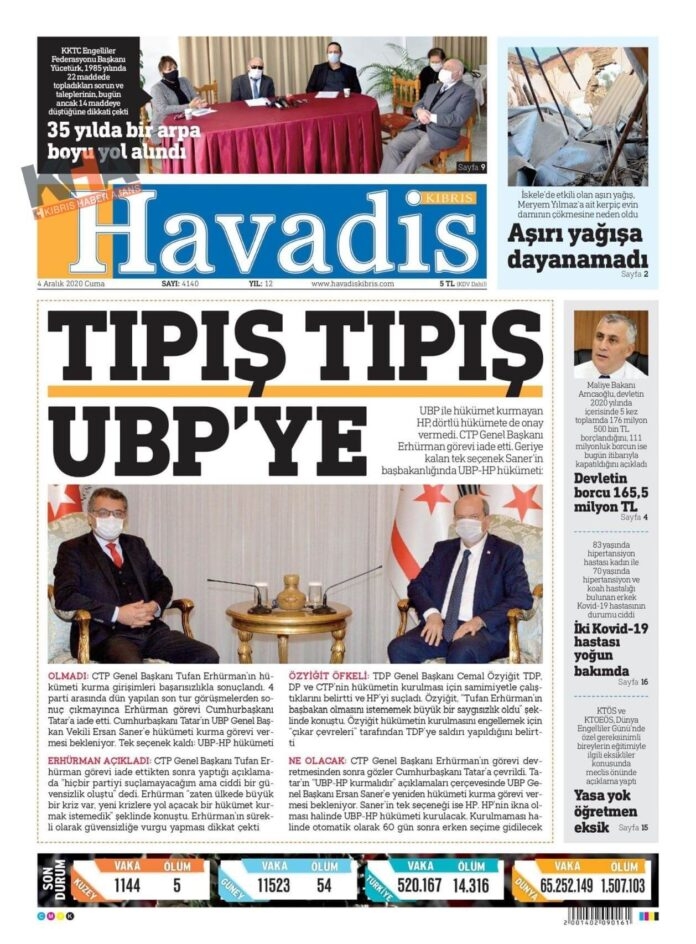 KKTC'de Gazeteler Bugün Ne Manşet Attı? (4 Aralık 2020 Cuma)