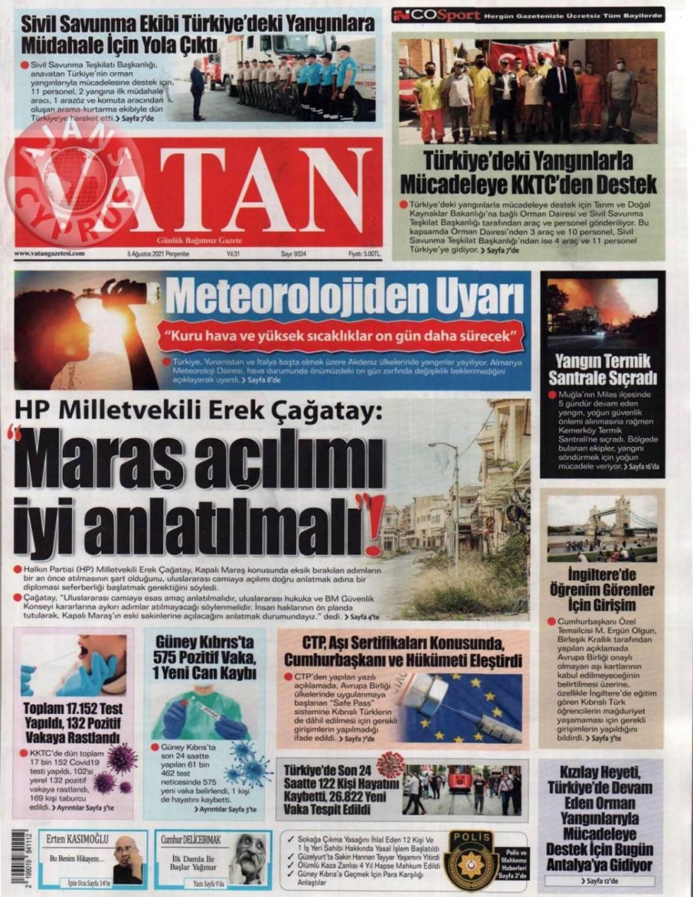 KKTC'de Gazeteler Bugün Ne Manşet Attı? (5 Ağustos 2021)
