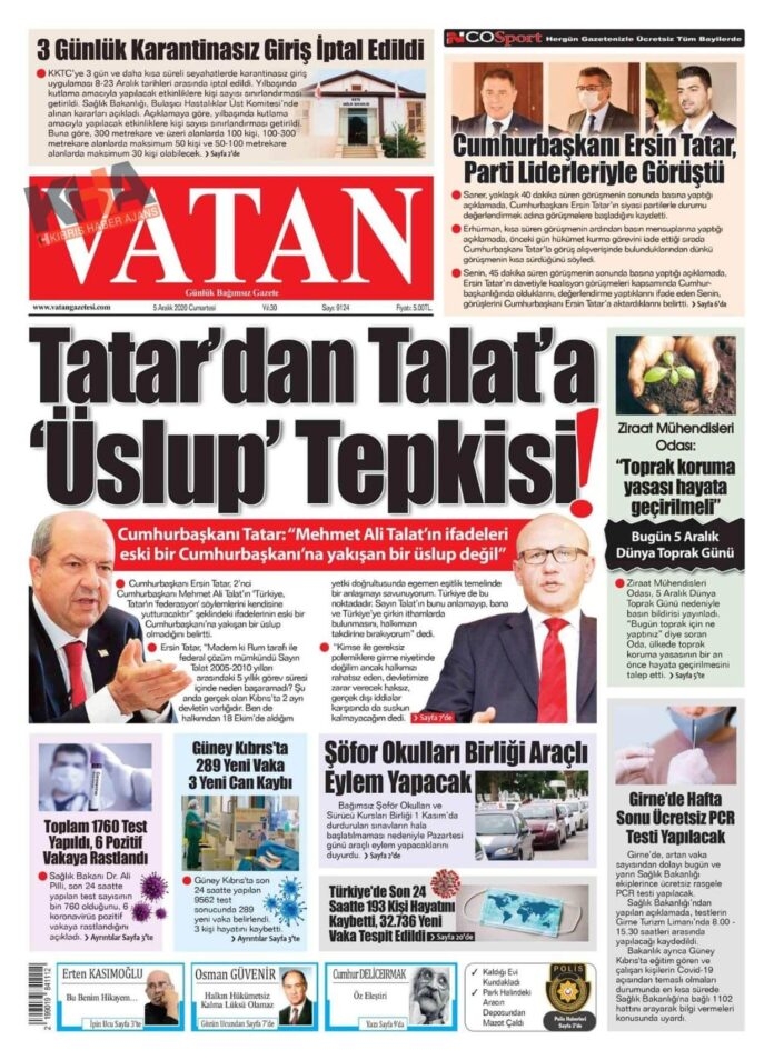 KKTC'de Gazeteler Bugün Ne Manşet Attı? (5 Aralık 2020 Cumartesi)