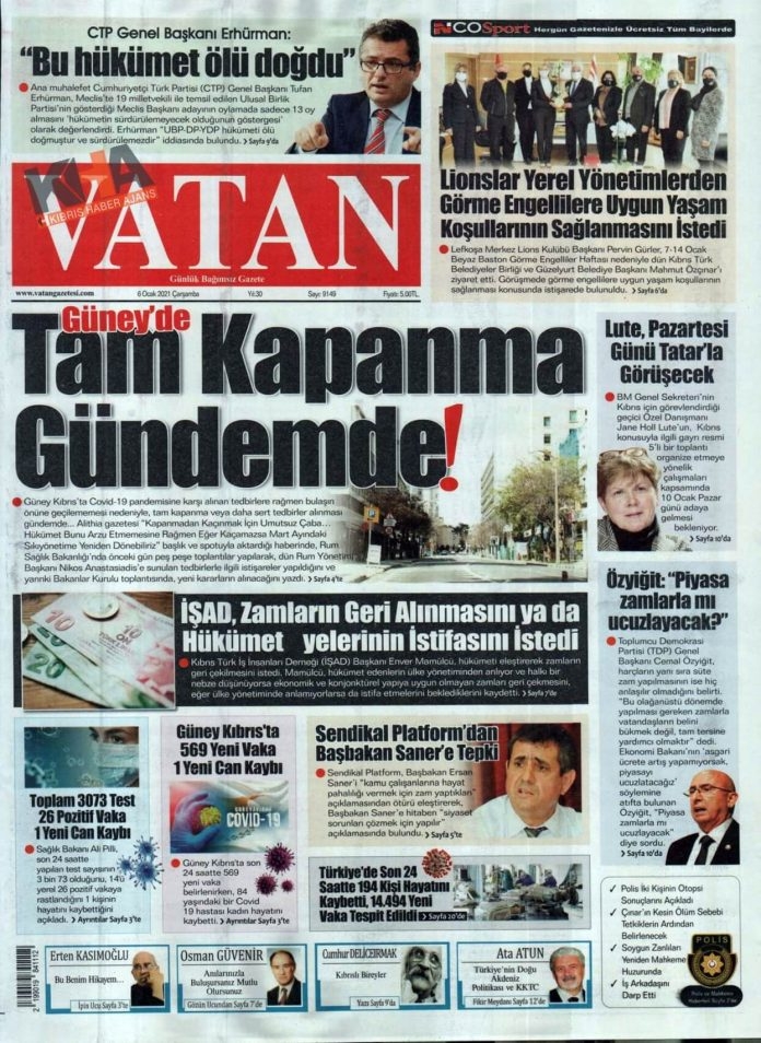 KKTC'de Gazeteler Bugün Ne Manşet Attı? (6 Ocak 2020)