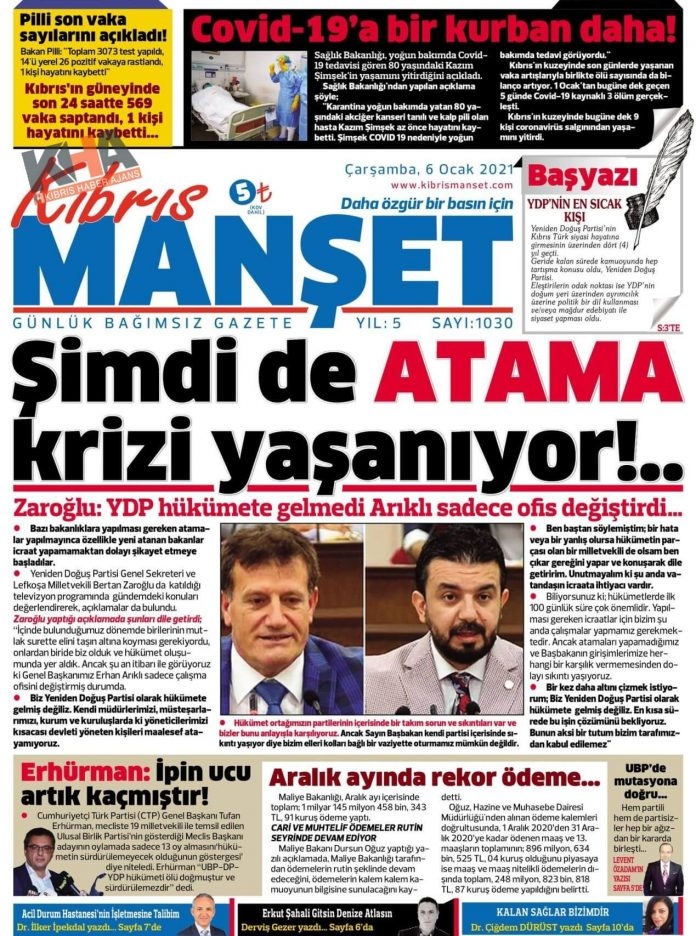 KKTC'de Gazeteler Bugün Ne Manşet Attı? (6 Ocak 2020)