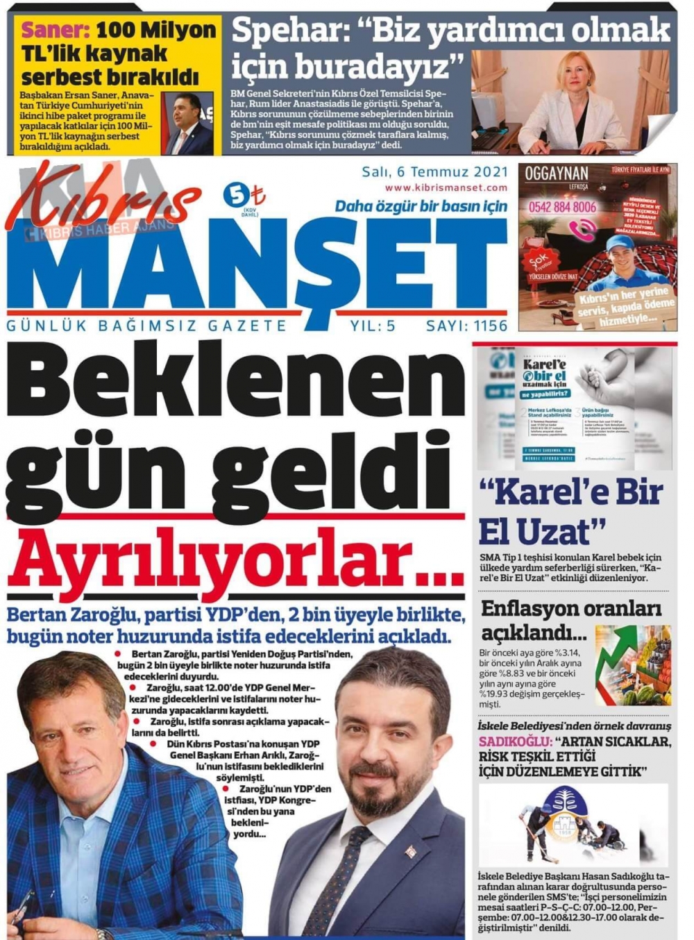 KKTC'de Gazeteler Bugün Ne Manşet Attı? (6 Temmuz 2021)