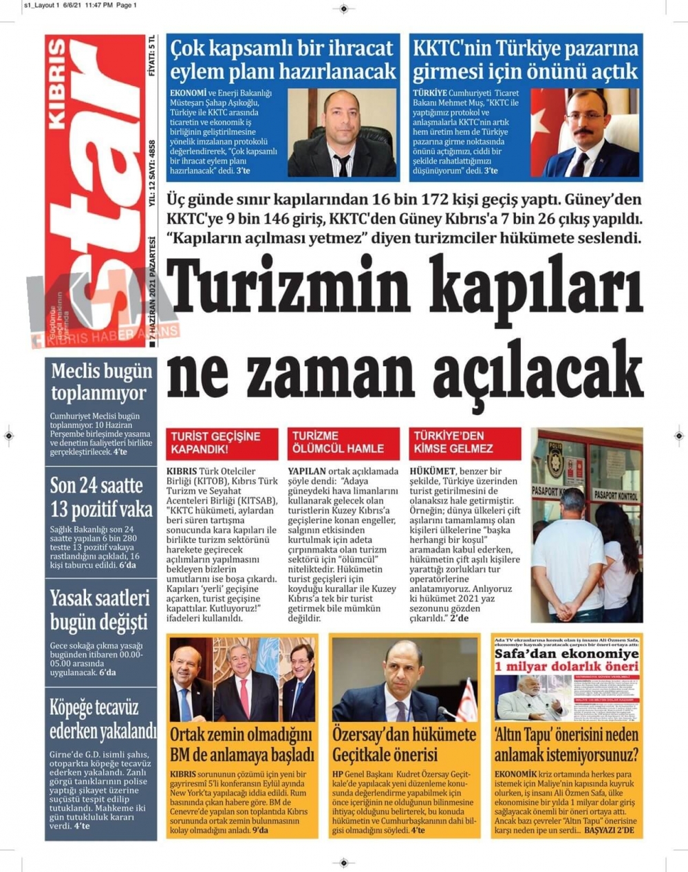 KKTC'de Gazeteler Bugün Ne Manşet Attı? (7 Haziran 2021)