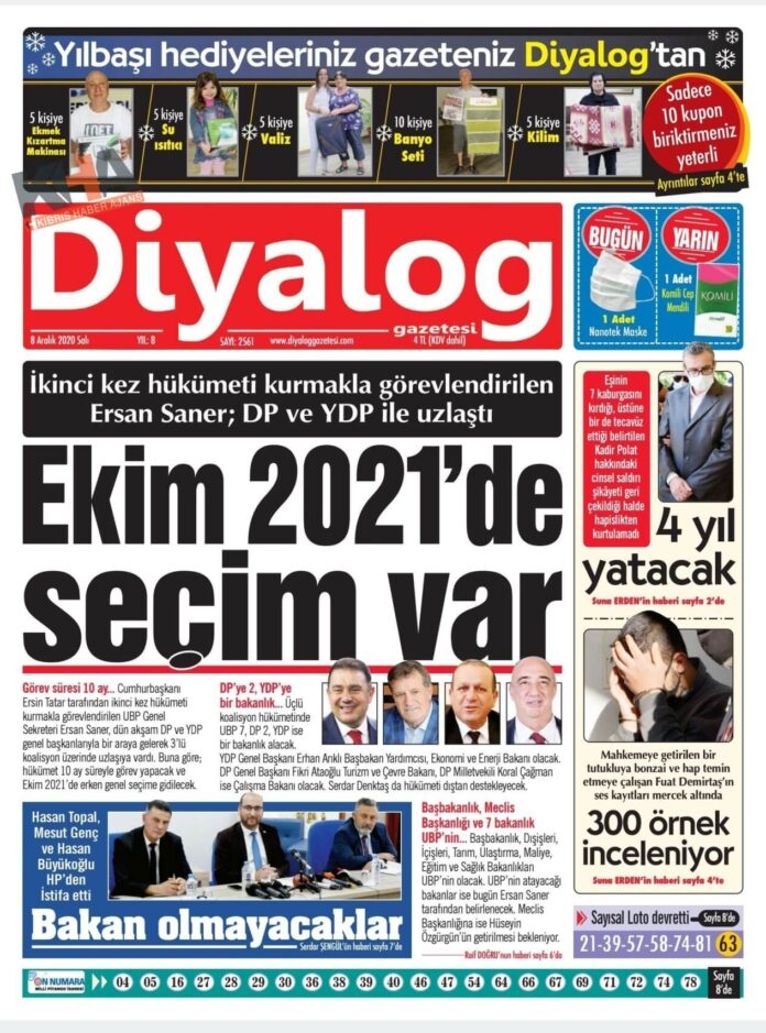 KKTC'de Gazeteler Bugün Ne Manşet Attı? ( 8 Aralık 2020 Salı )
