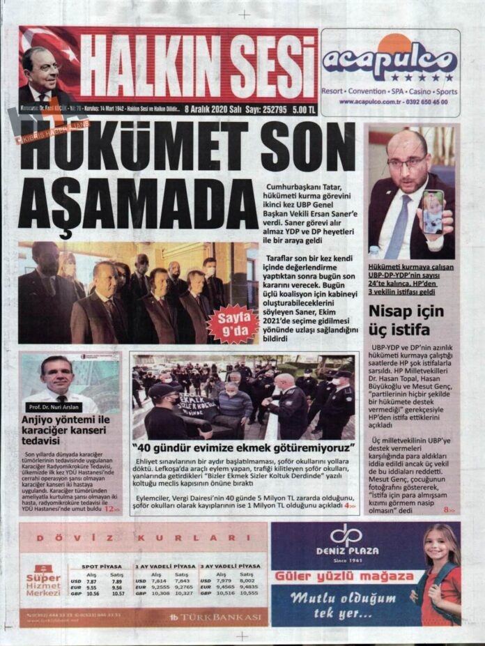 KKTC'de Gazeteler Bugün Ne Manşet Attı? ( 8 Aralık 2020 Salı )