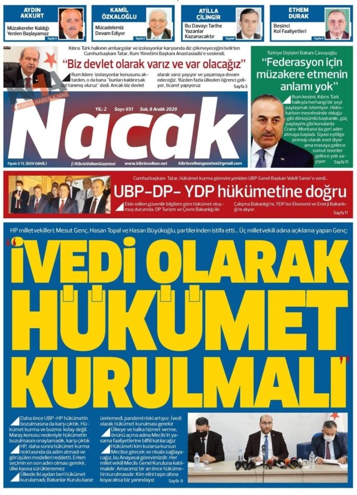 KKTC'de Gazeteler Bugün Ne Manşet Attı? ( 8 Aralık 2020 Salı )