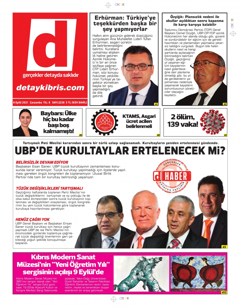 KKTC'de Gazeteler Bugün Ne Manşet Attı? (8 Eylül 2021)