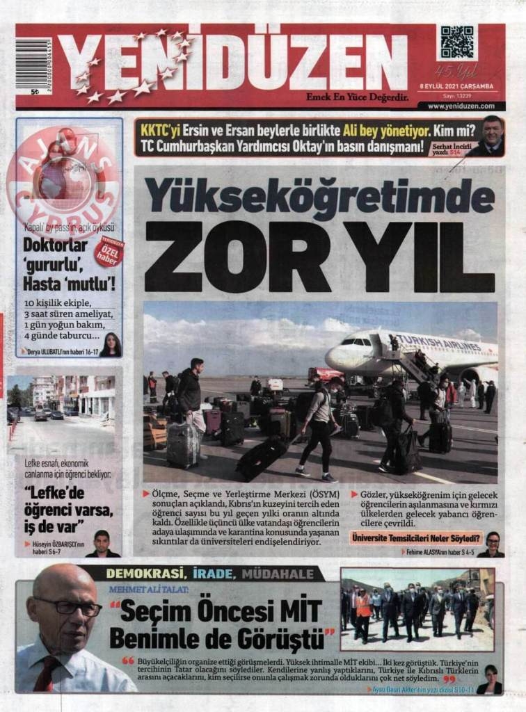 KKTC'de Gazeteler Bugün Ne Manşet Attı? (8 Eylül 2021)