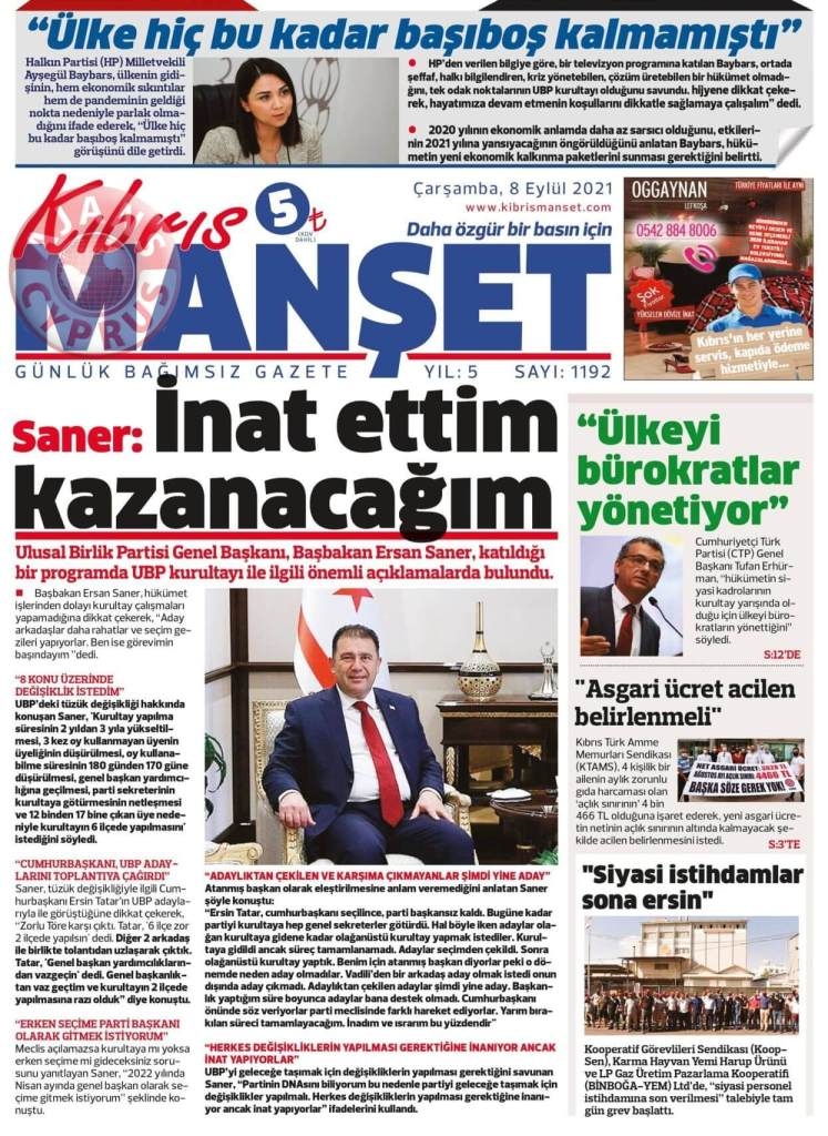 KKTC'de Gazeteler Bugün Ne Manşet Attı? (8 Eylül 2021)
