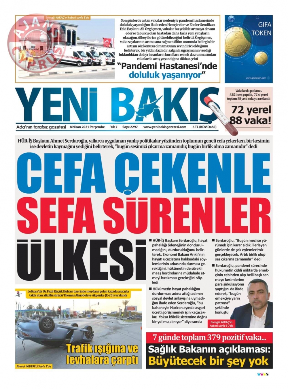 KKTC'de Gazeteler Bugün Ne Manşet Attı? (8 Nisan 2021)