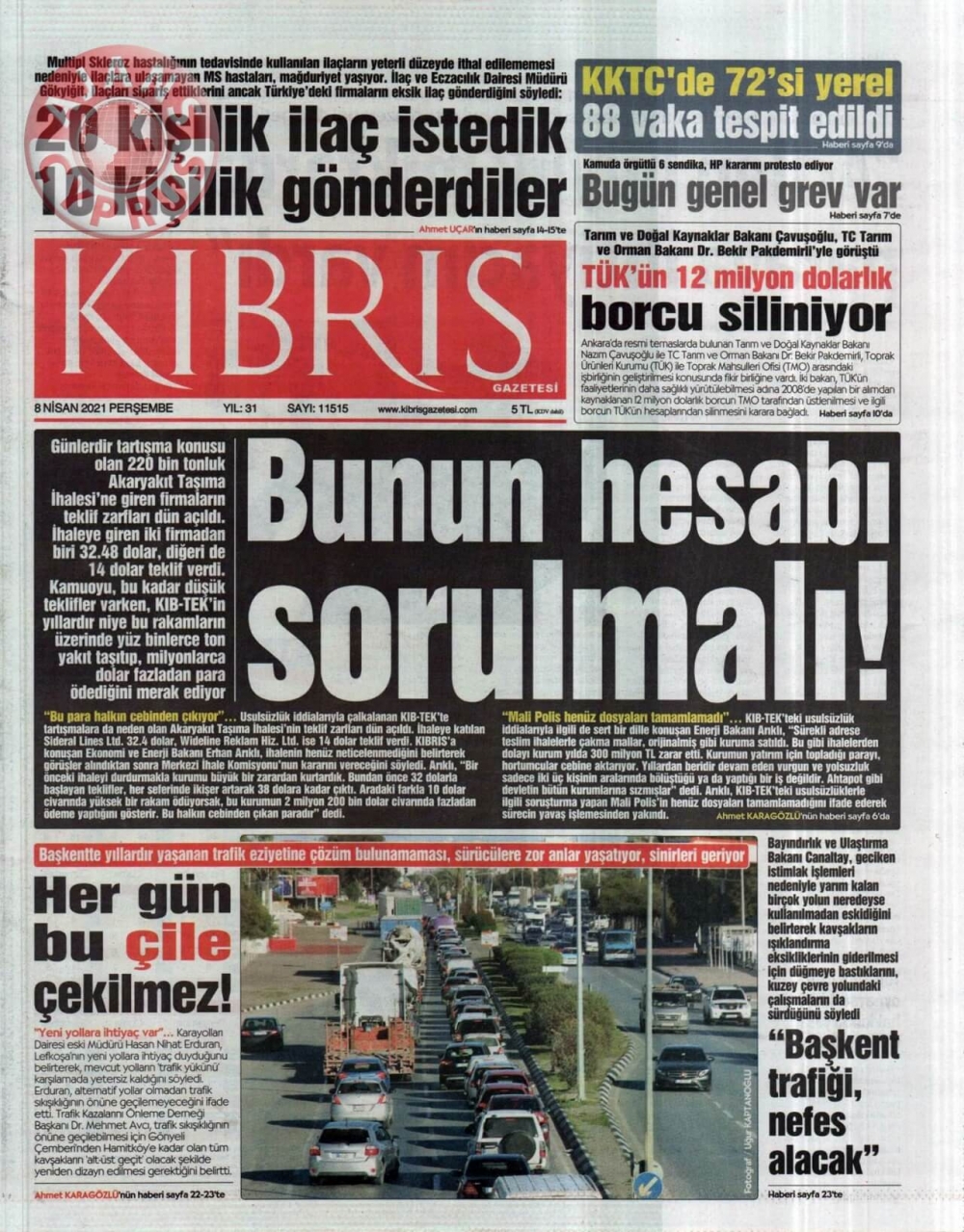 KKTC'de Gazeteler Bugün Ne Manşet Attı? (8 Nisan 2021)