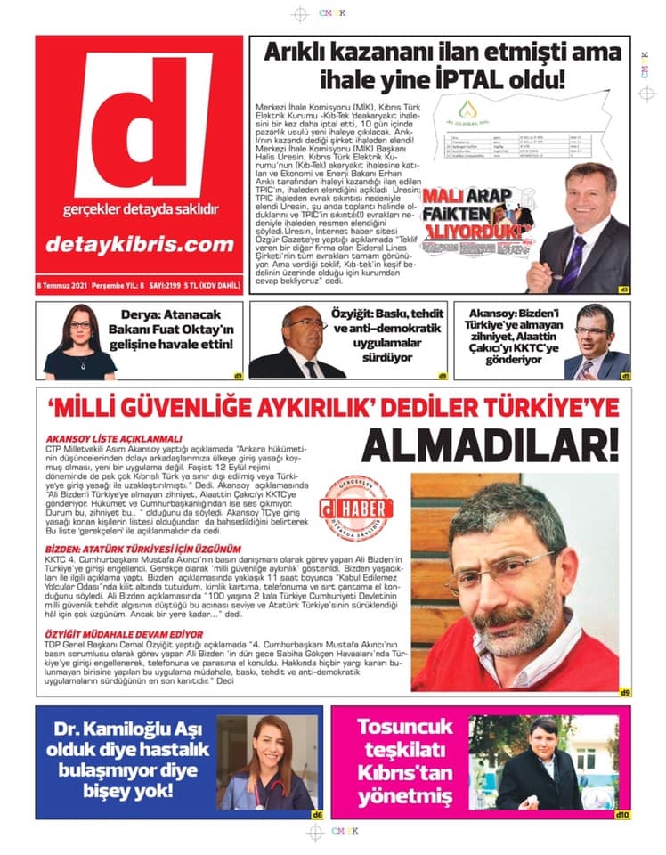 KKTC'de Gazeteler Bugün Ne Manşet Attı? (8 Temmuz 2021)