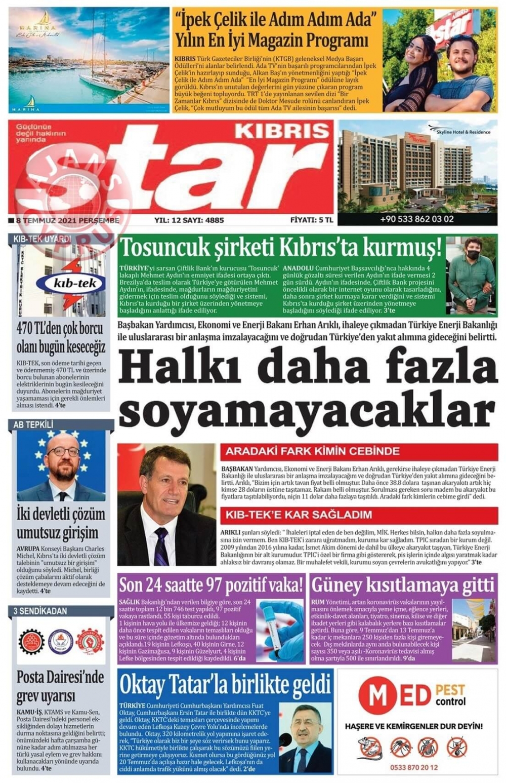 KKTC'de Gazeteler Bugün Ne Manşet Attı? (8 Temmuz 2021)