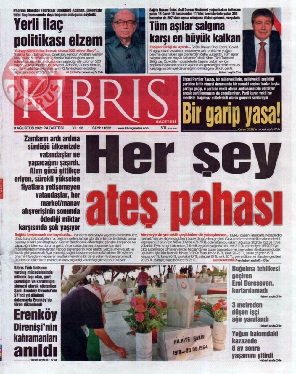 KKTC'de Gazeteler Bugün Ne Manşet Attı? (9 Ağustos 2021)