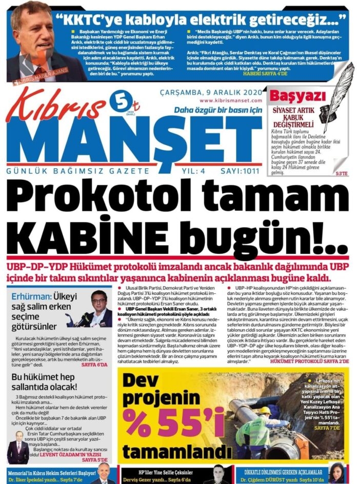 KKTC'de Gazeteler Bugün Ne Manşet Attı? ( 9 Aralık 2020 Çarşamba )