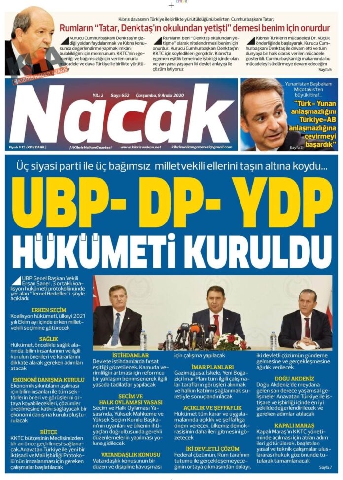 KKTC'de Gazeteler Bugün Ne Manşet Attı? ( 9 Aralık 2020 Çarşamba )