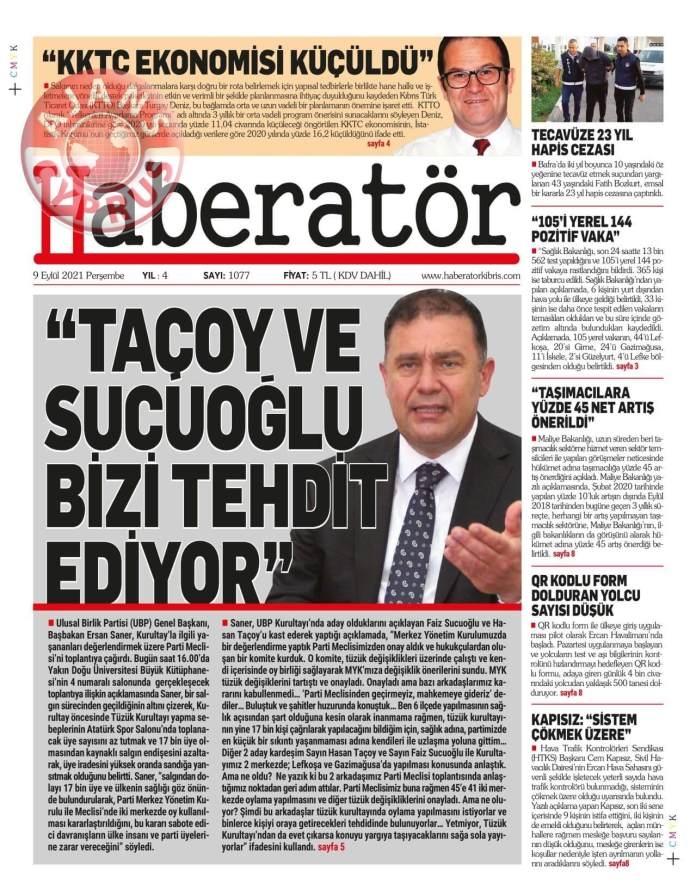 KKTC'de Gazeteler Bugün Ne Manşet Attı? (9 Eylül 2021)