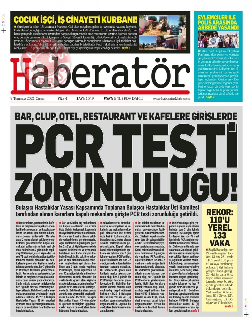 KKTC'de Gazeteler Bugün Ne Manşet Attı? (9 Temmuz 2021)