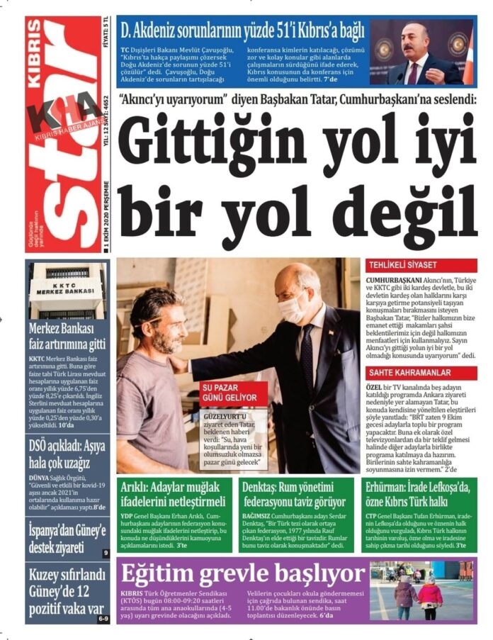 KKTC'de Gazeteler Bugün Ne Yazdı? 01 Ekim 2020 Perşembe