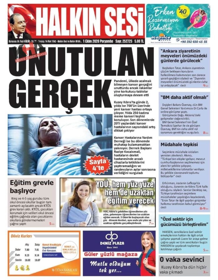 KKTC'de Gazeteler Bugün Ne Yazdı? 01 Ekim 2020 Perşembe