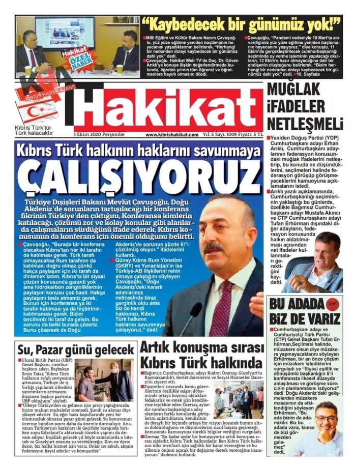 KKTC'de Gazeteler Bugün Ne Yazdı? 01 Ekim 2020 Perşembe