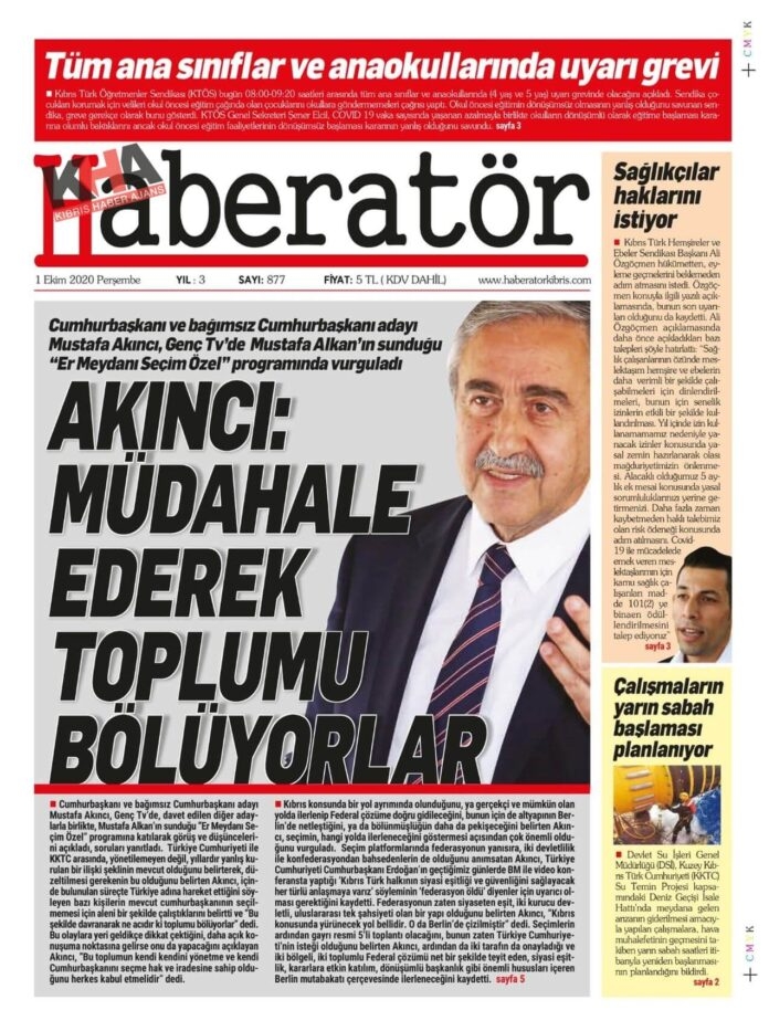 KKTC'de Gazeteler Bugün Ne Yazdı? 01 Ekim 2020 Perşembe