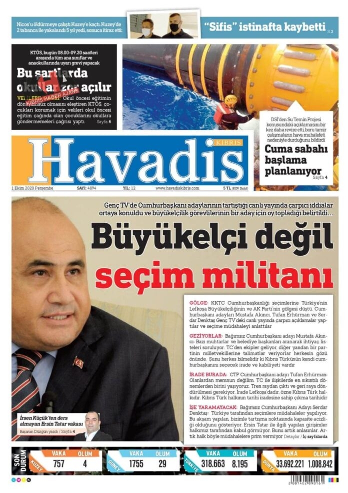 KKTC'de Gazeteler Bugün Ne Yazdı? 01 Ekim 2020 Perşembe