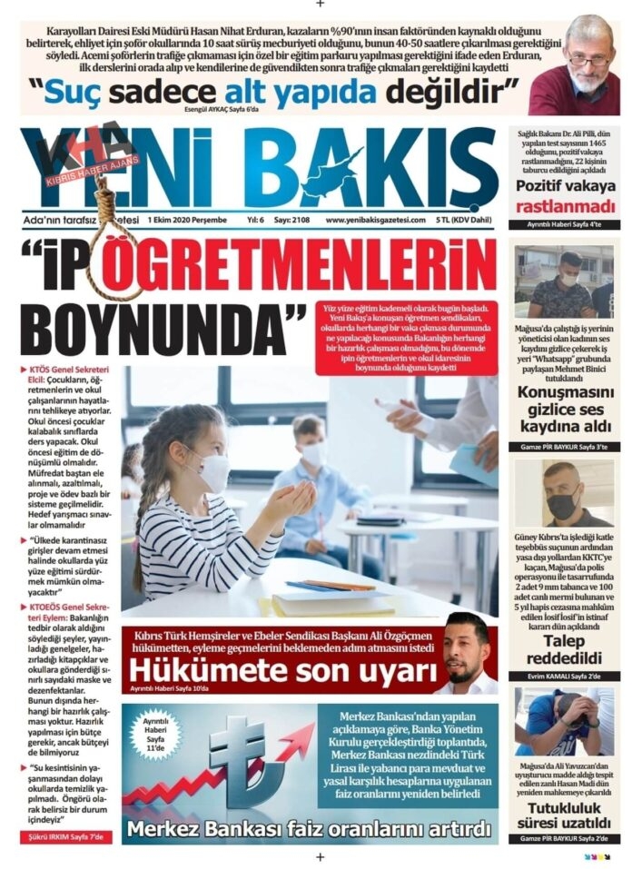 KKTC'de Gazeteler Bugün Ne Yazdı? 01 Ekim 2020 Perşembe