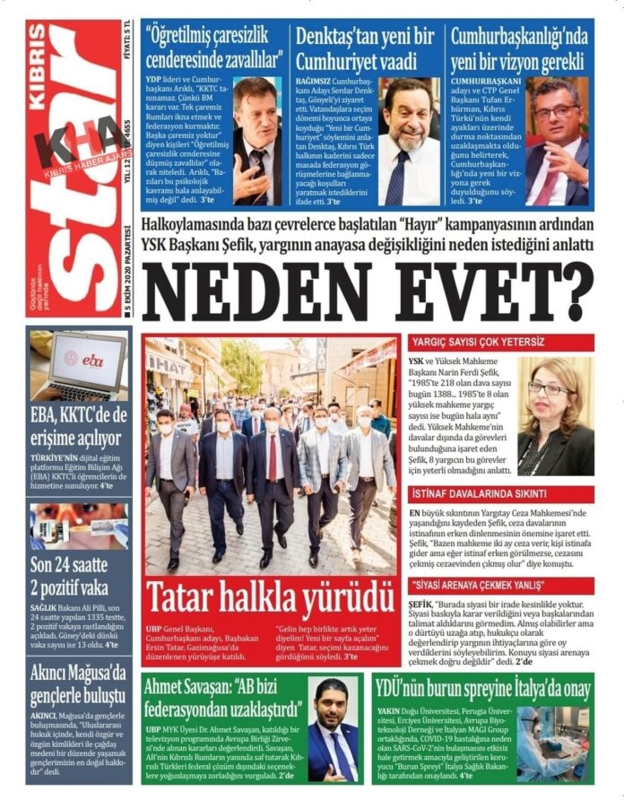 KKTC'de Gazeteler Bugün Ne Yazdı? 05 Ekim 2020 Pazartesi